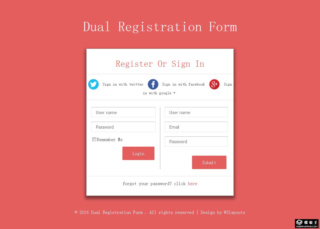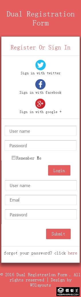 第三方注册登录表单响应式网页模板。