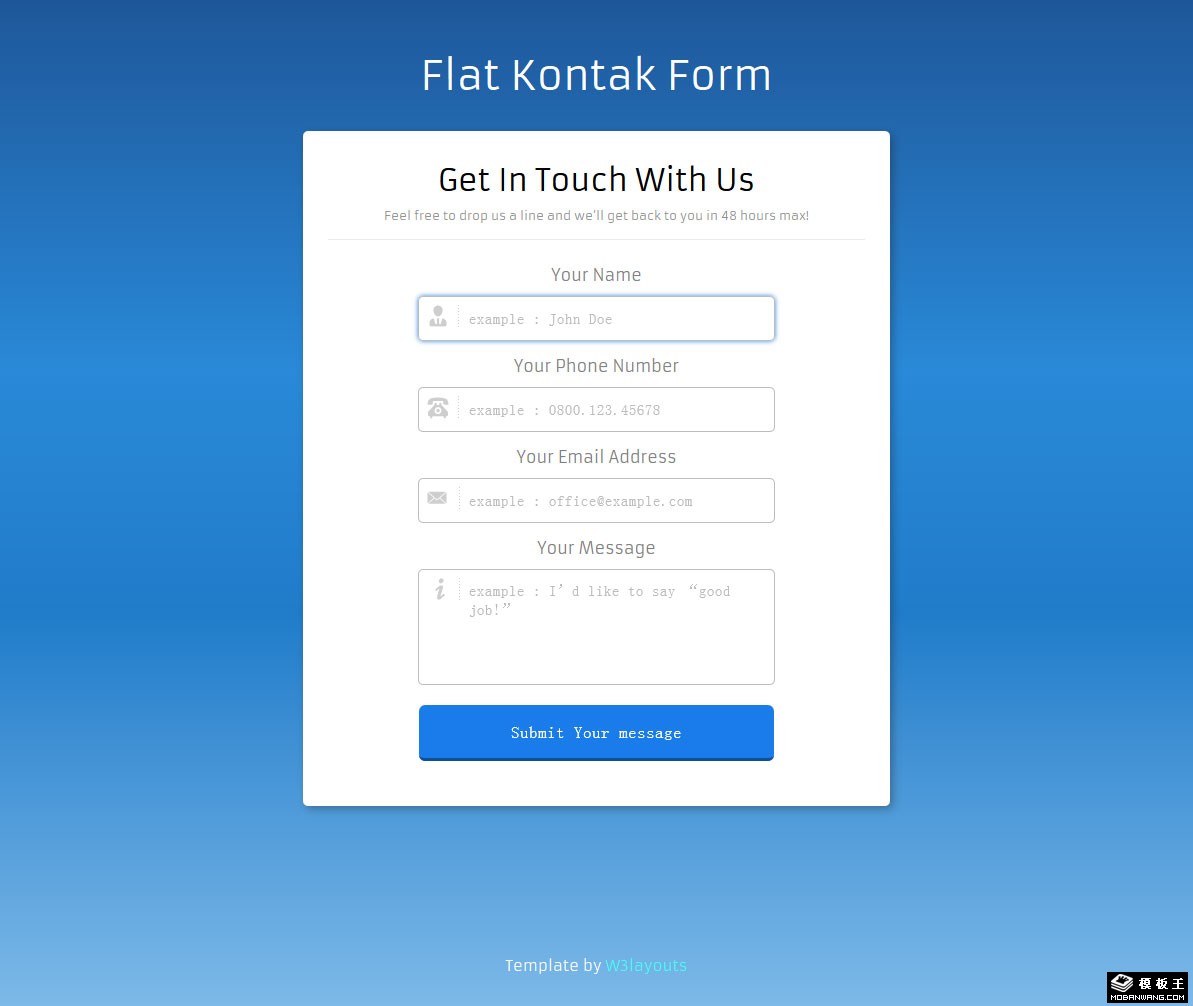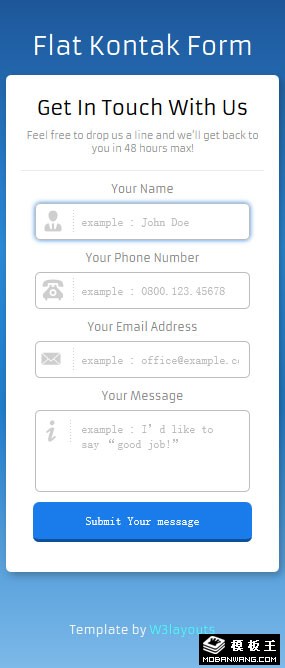 蓝色联系信息提交表单响应式网页模板。