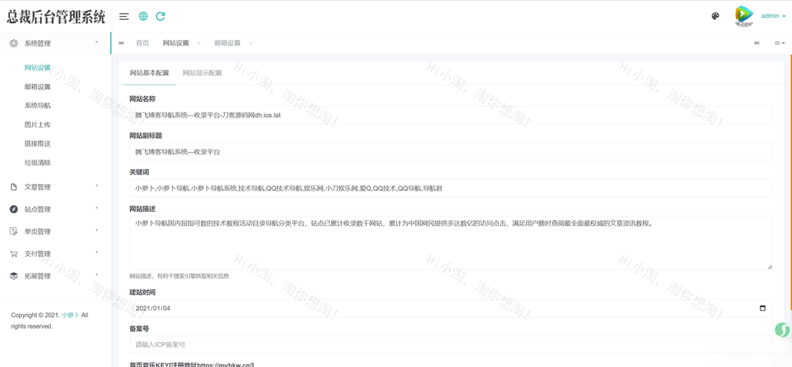 总裁导航是国内屈指可数的技术教程活动目录导航分类平台,这套源码总裁是有一些小bug,这次小萝卜已经完美的修复了bug,并且简单的测试了一下,功能正常,喜欢的自行部署!