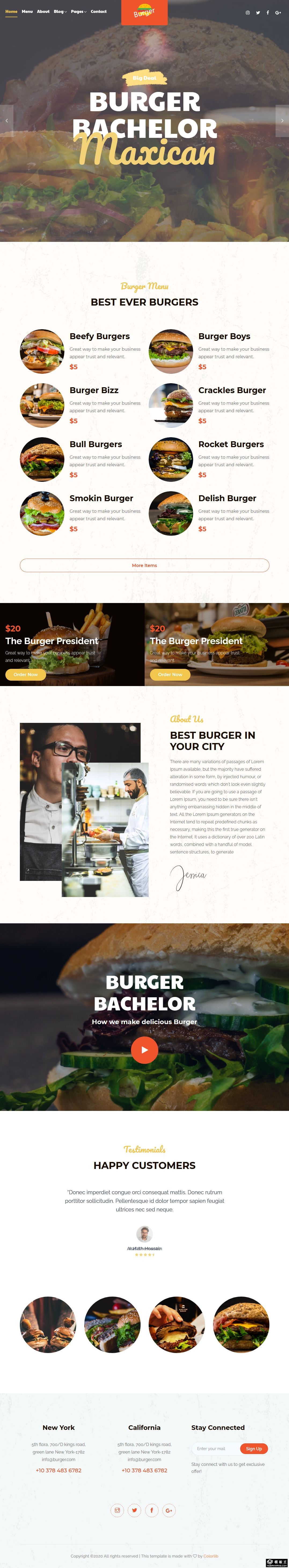 汉堡连锁餐厅展示响应式网页模板。