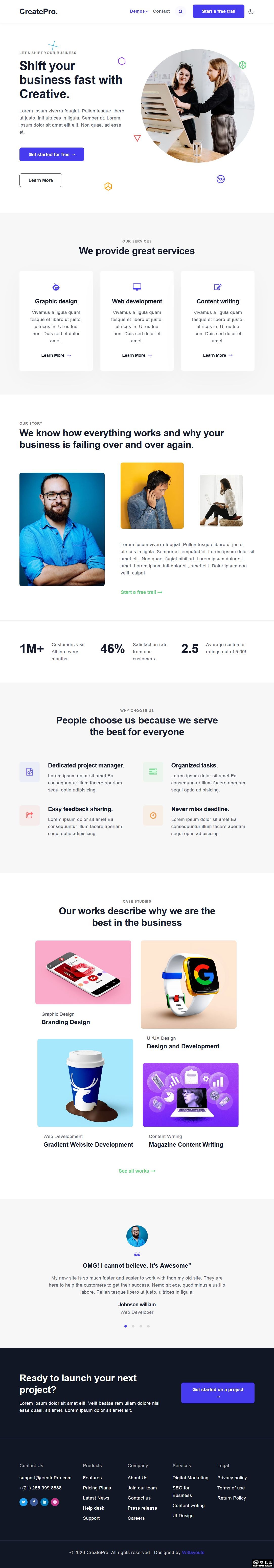设计师创意产品展示响应式网页模板。