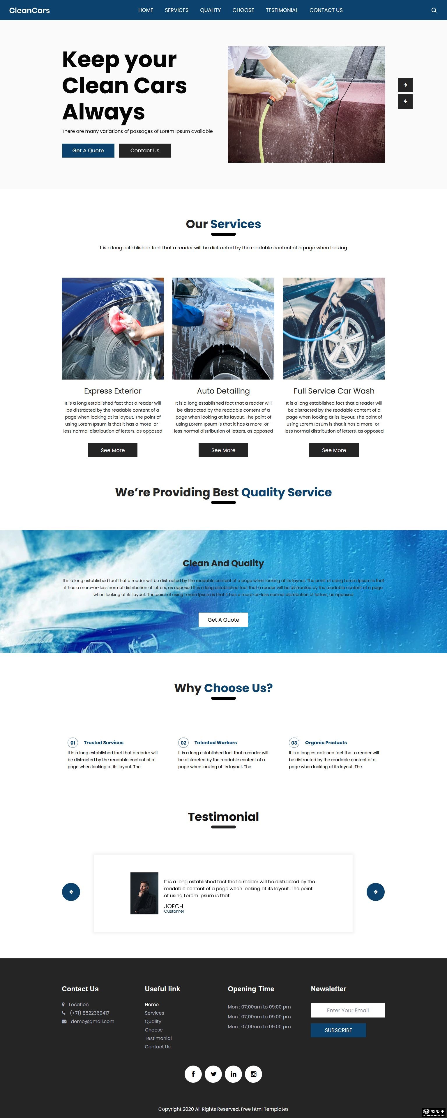 全方位洗车服务响应式网页模板。