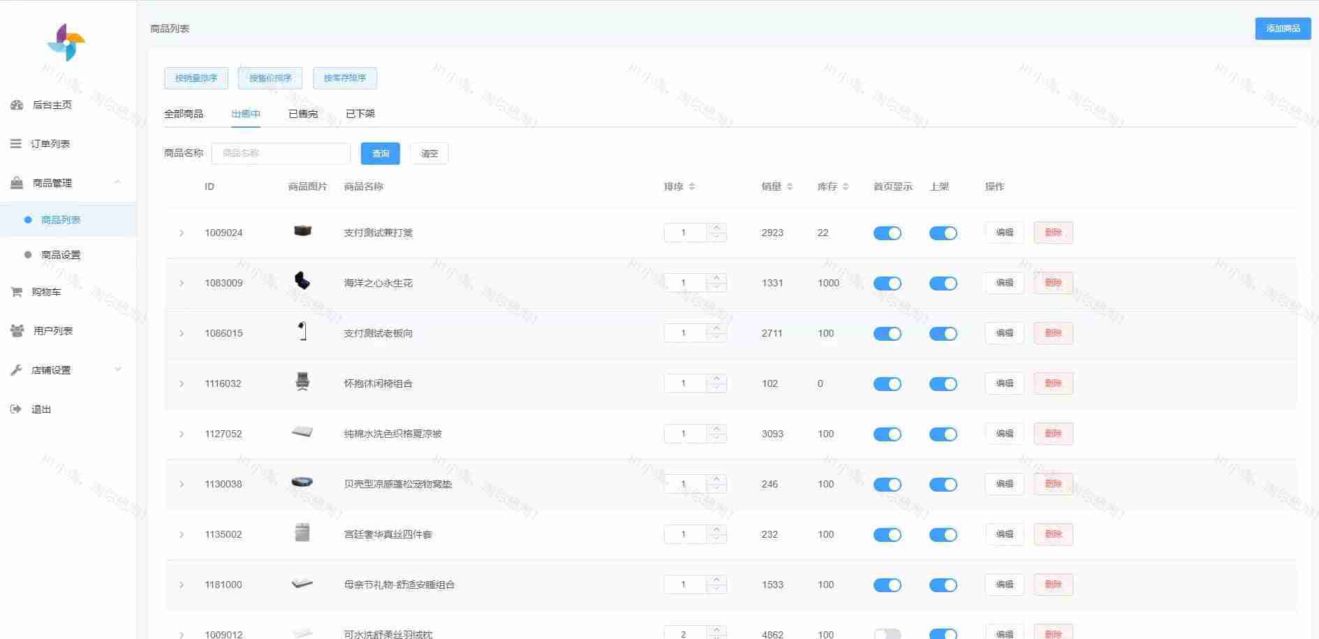 商城小程序的后台管理界面则基于VUE.js+element-ui构建,这是当前非常热门的前端框架,对于前端开发者而言,学习它无疑是非常重要的。