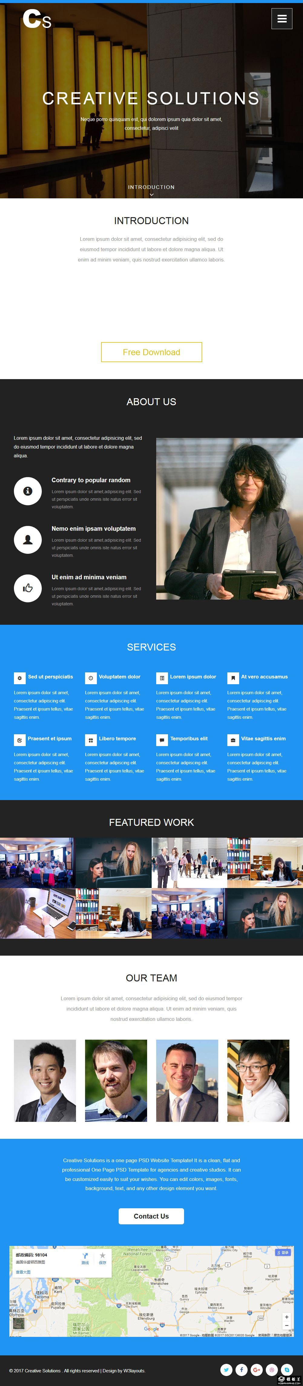 创造性解决方案团队服务响应式网页模板。