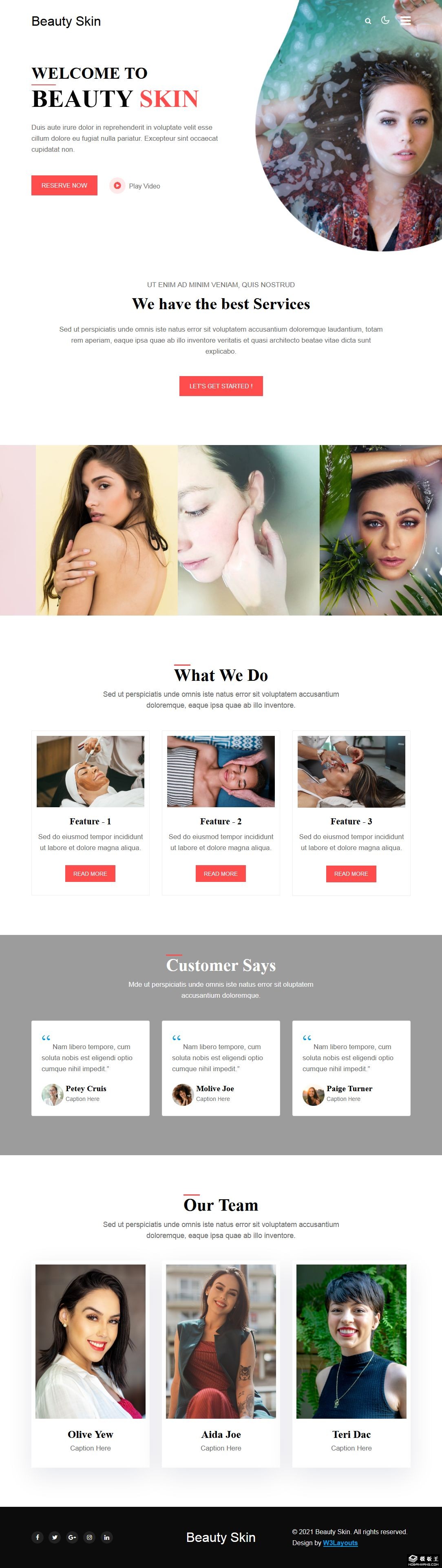 肌肤保养护理美容响应式网页模板。