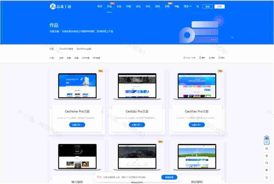 CeoNova-Pro主题是一款轻量级、且简洁大气、产品官网类主题,定位于高端产品官网、同时包含了知识付费、定制服务、问答社区、论坛交流、网址导航、以及付费产品购买下载等全方位覆盖。