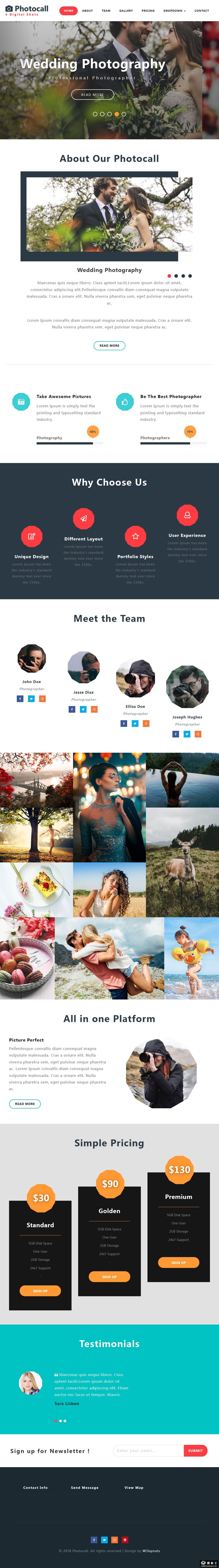 幸福时刻摄影公司响应式网页模板。