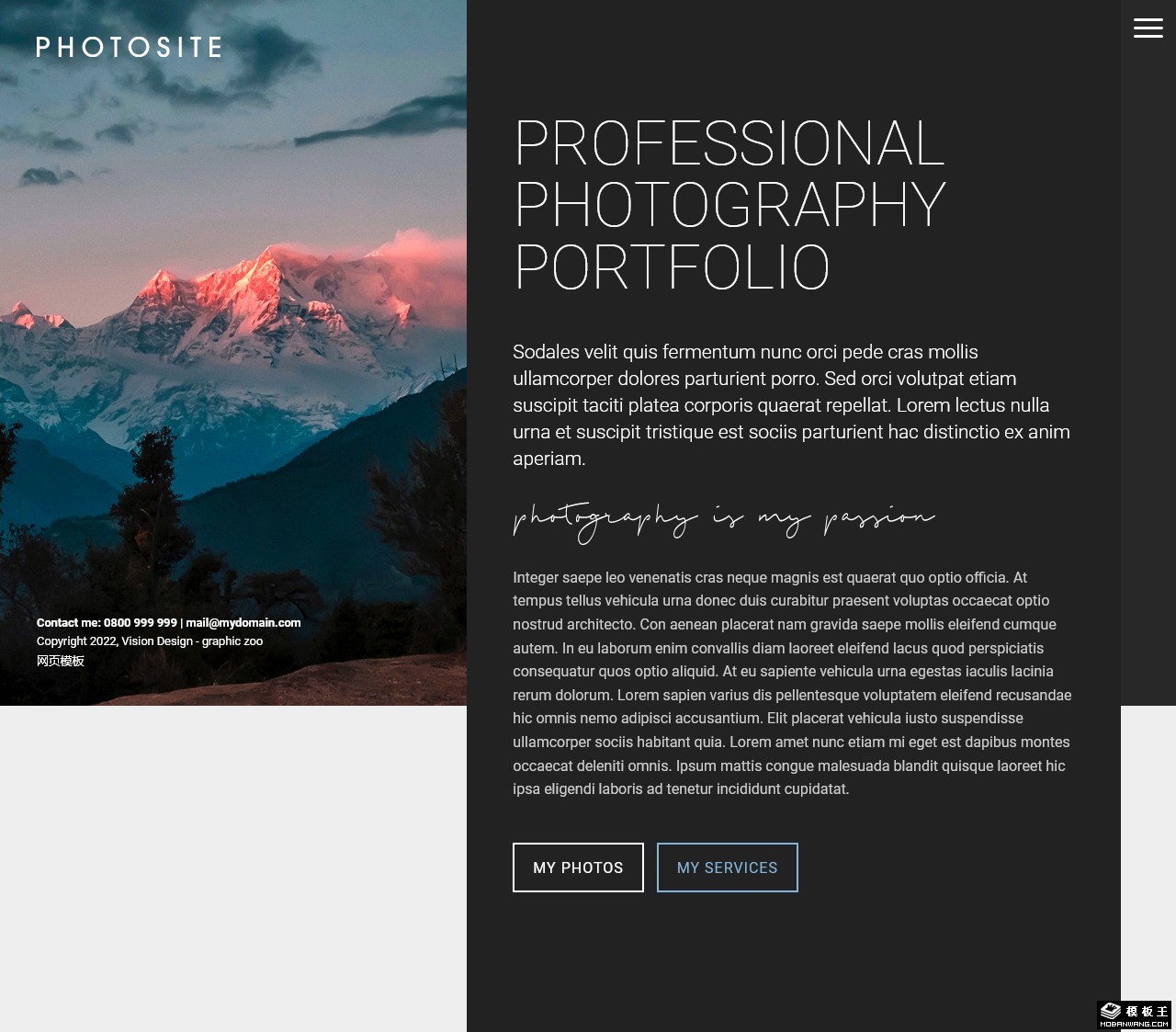 专业摄影团队左右排版网页模板。
