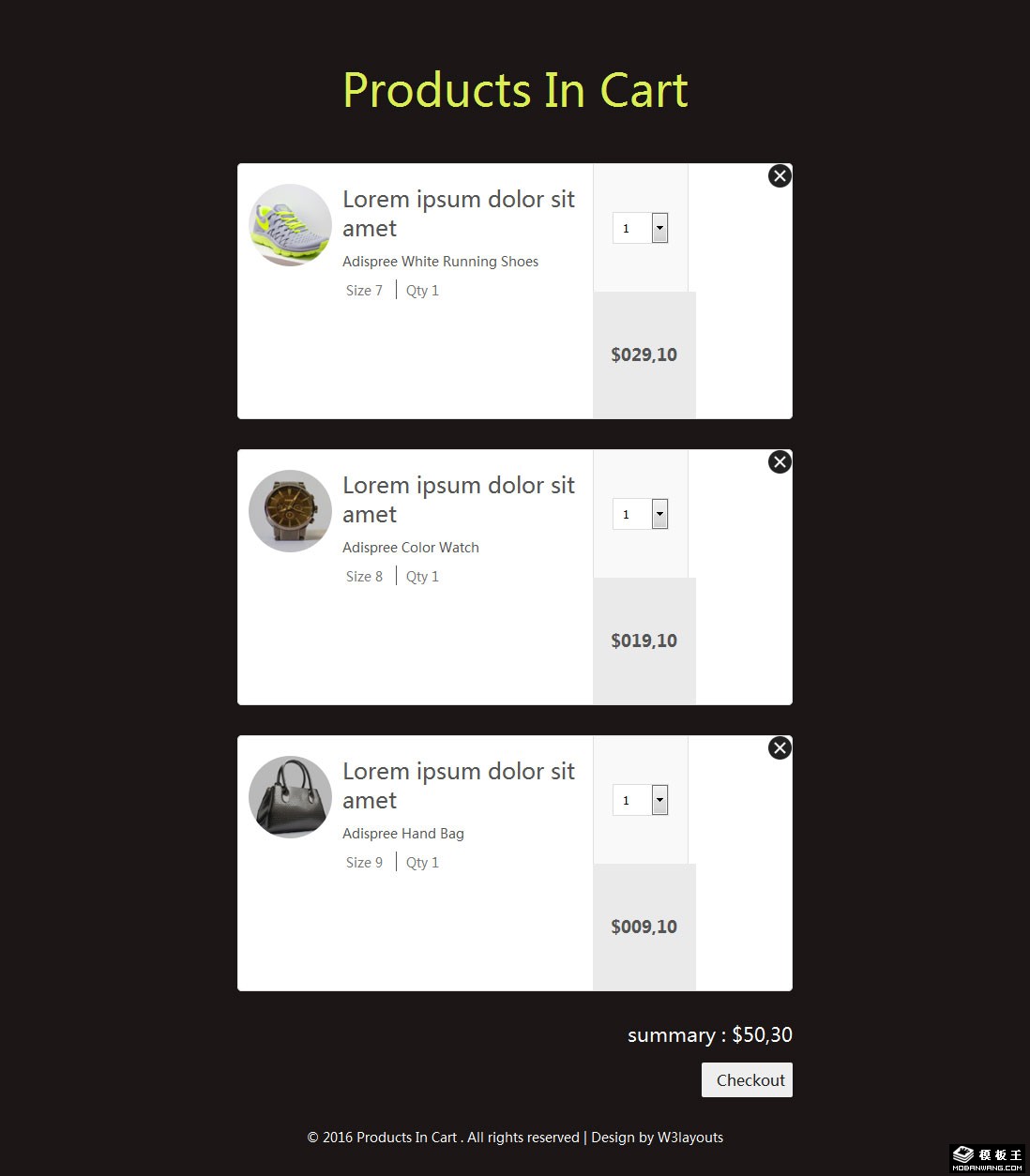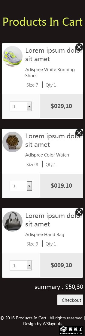 购物车列表网页模板。