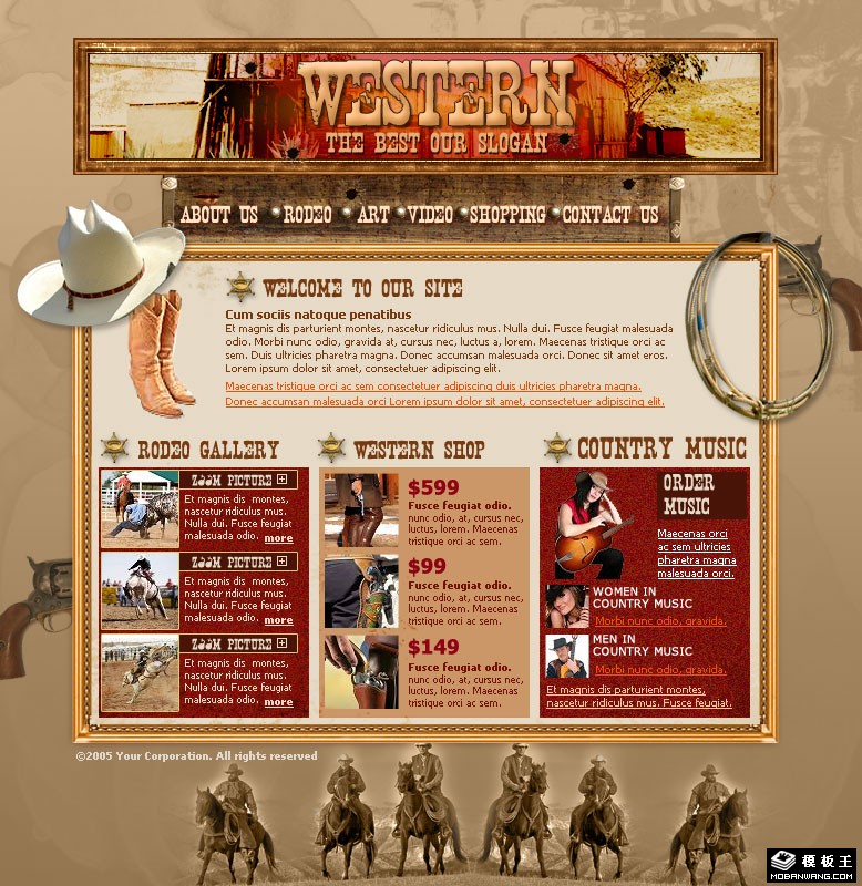 西部牛仔主题网页模板。