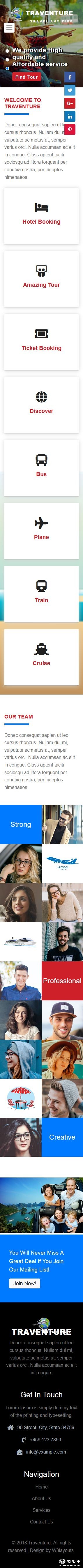 旅行预告指南服务响应式网页模板。
