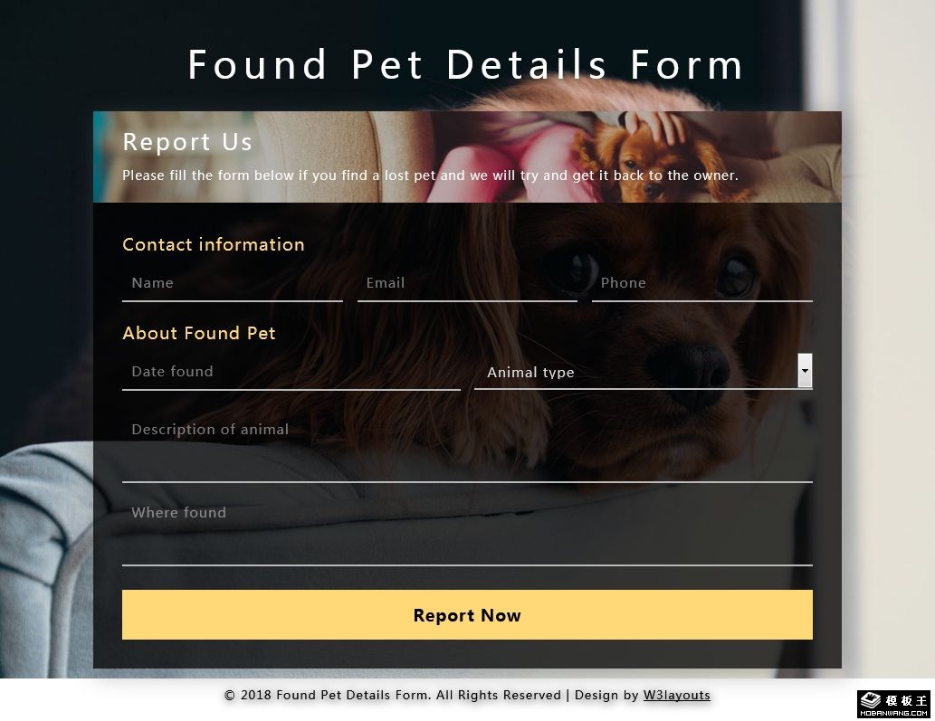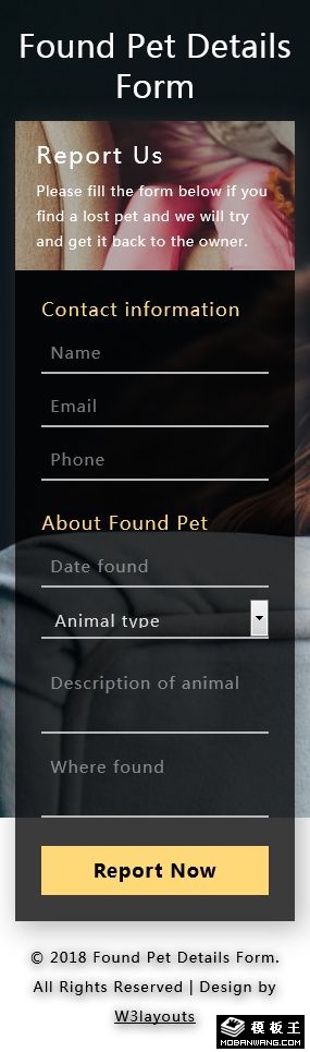 流浪宠物登记表单响应式网页模板。