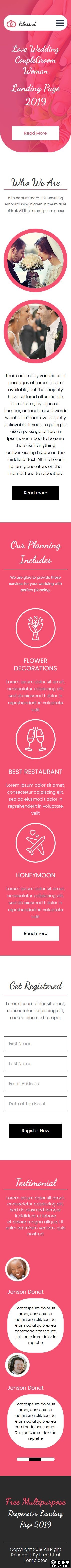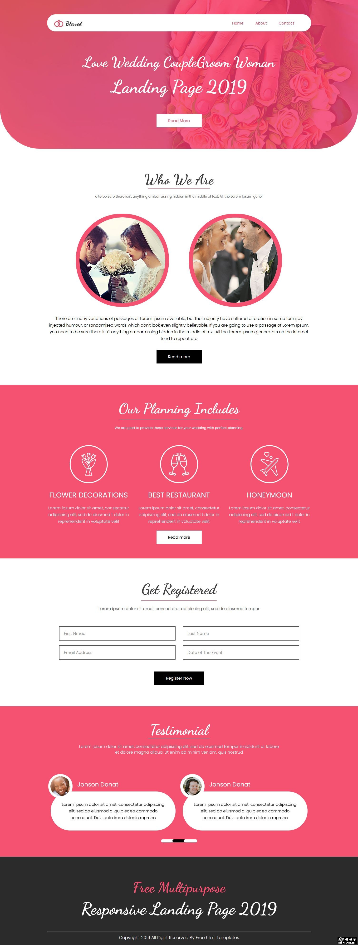 玫红祝福婚礼策划网页模板。