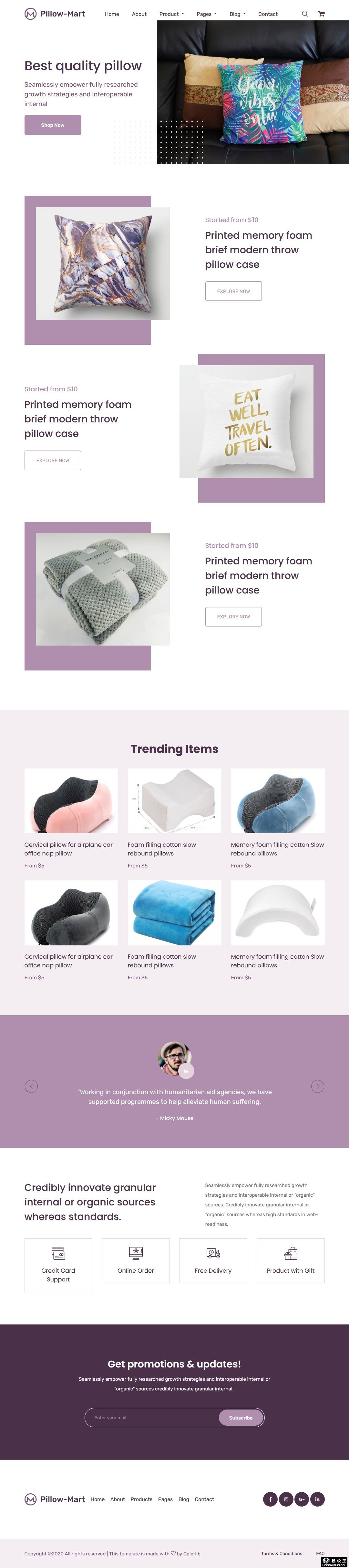 枕头产品展示响应式网页模板。