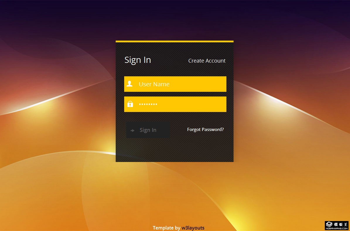 金色炫彩登录框网页模板。