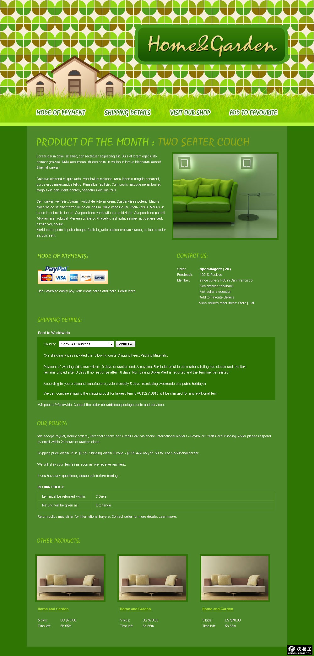 家居沙发销售介绍网页模板。