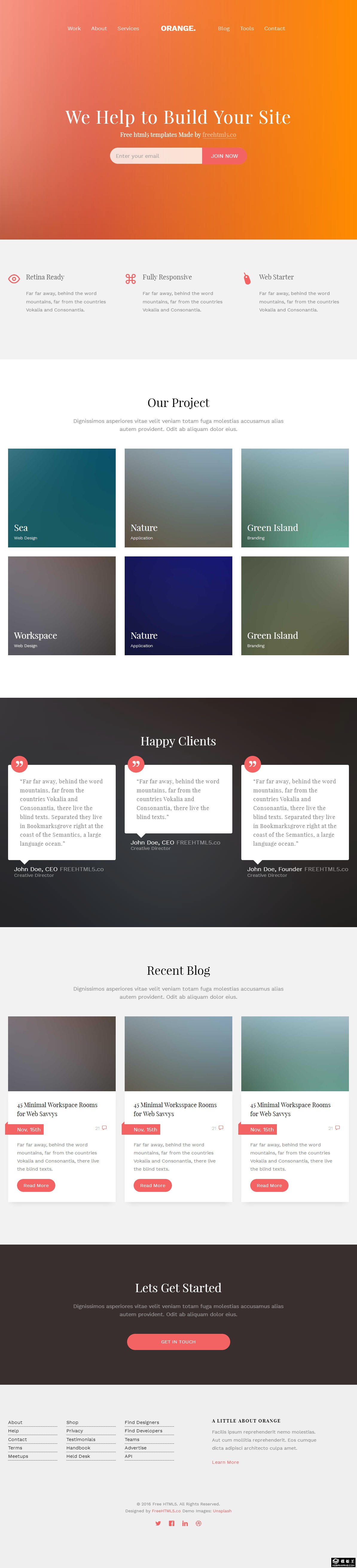 橙色项目案例展示响应式网站模板。
