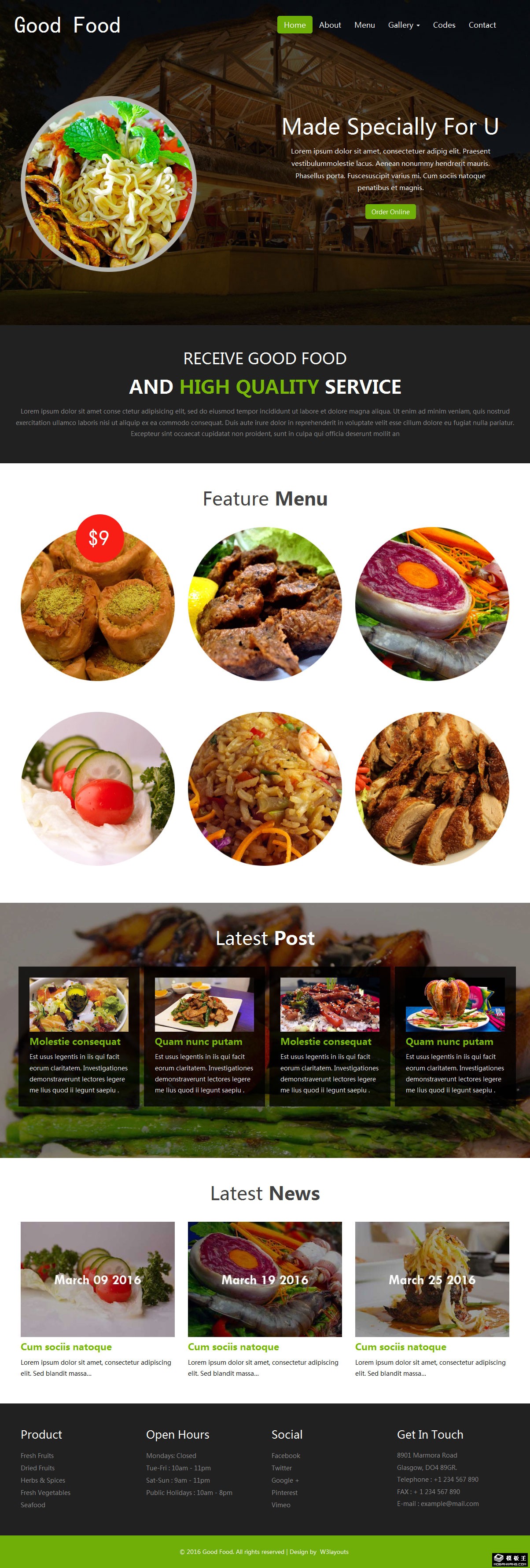 特别美味餐厅响应式网页模板。