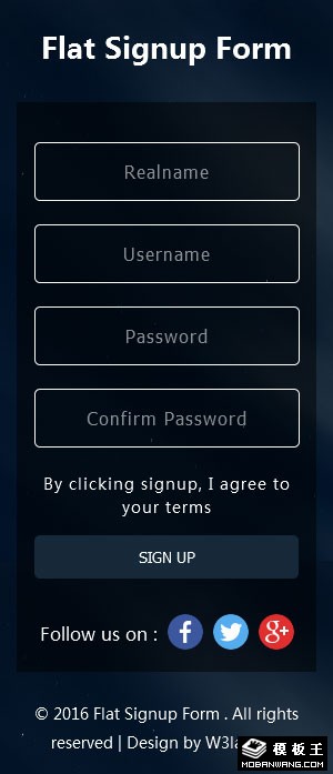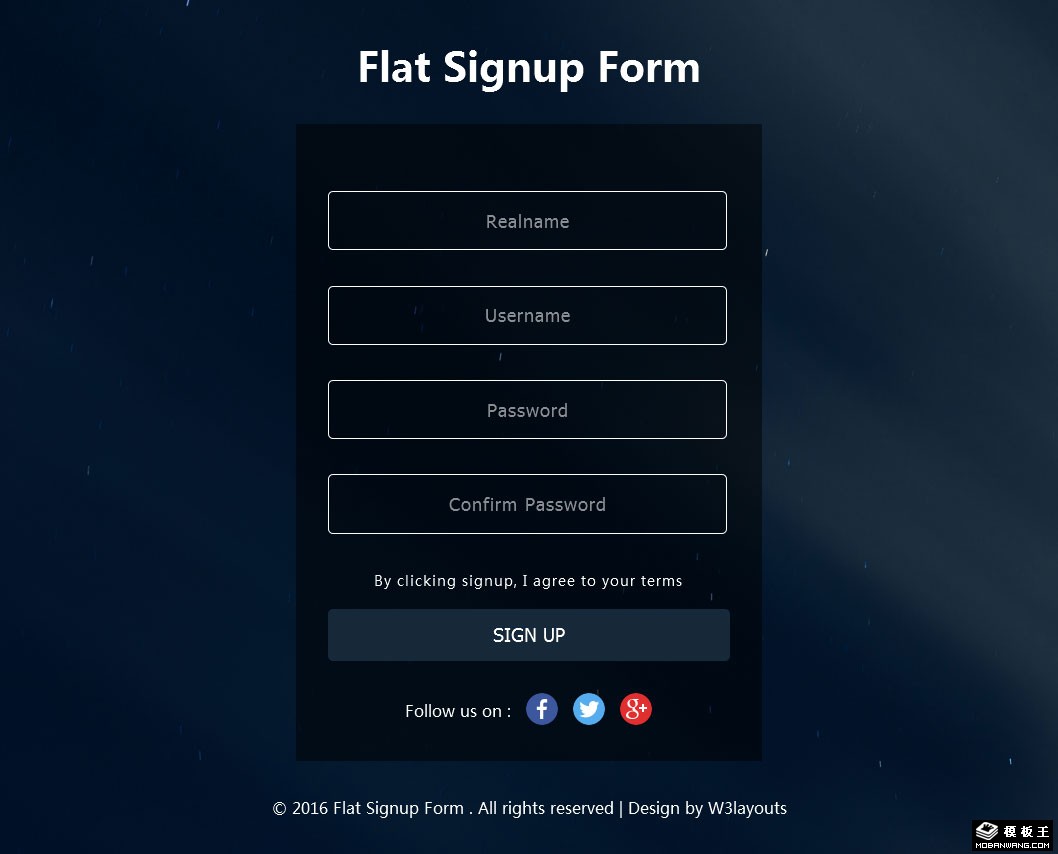 深蓝注册表单网页模板。