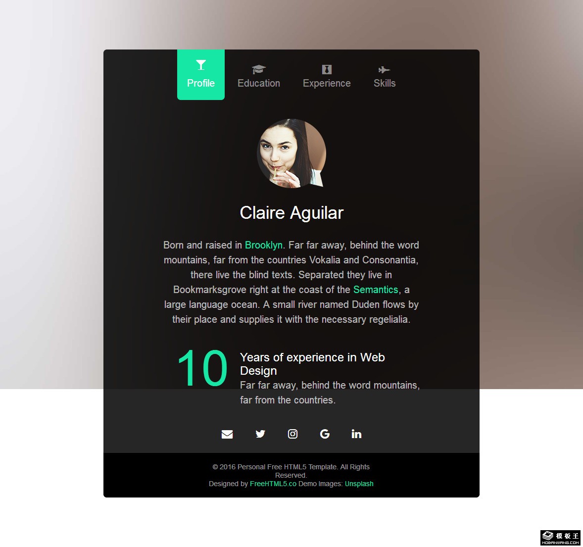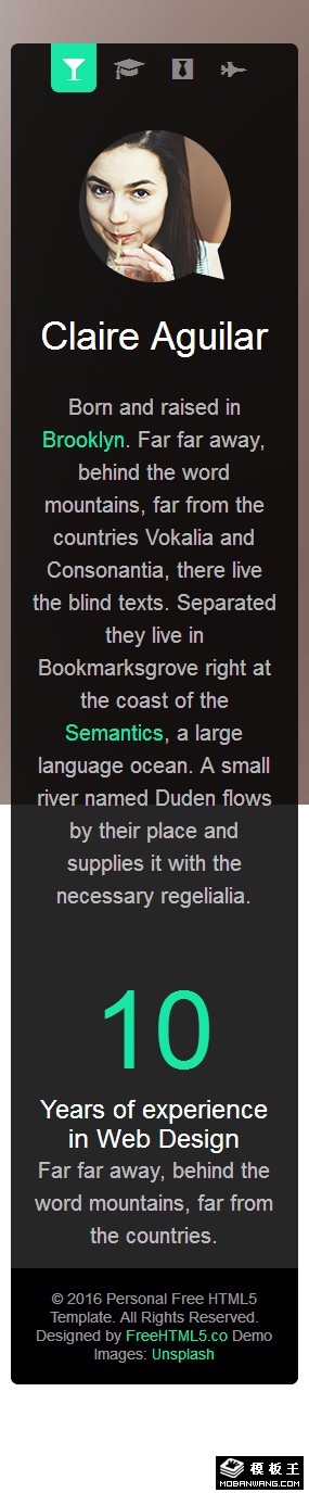 黑色个人简历介绍响应式网页模板。