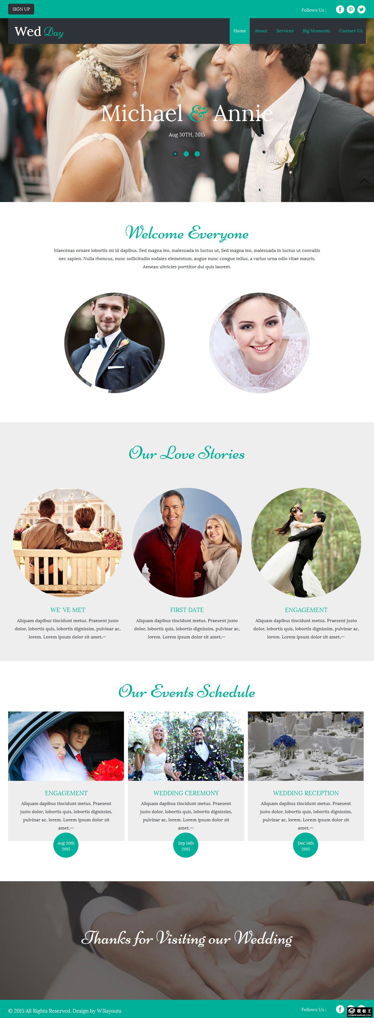 婚礼祝福策划响应式网站模板。