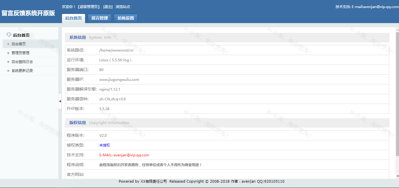 开源PHP留言反馈管理系统 v2.0 在线下载