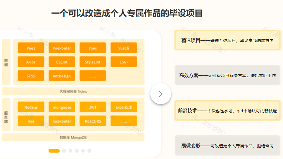 专为毕业生打造,助你高效、高质量完成毕设作品,解决毕业头等大事。课程全面梳理毕设流程,并精准定位每个环节的重点难点、完成技巧,扫清毕设难题。采用主流、企业级技术栈,祝你完成毕设,直面校招。