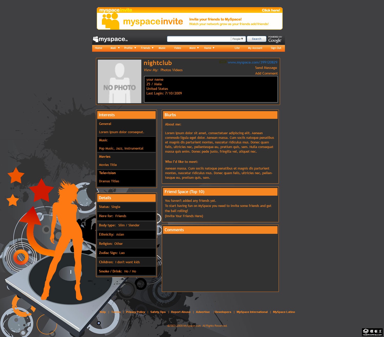 灰色橙黄个人音乐网页模板。