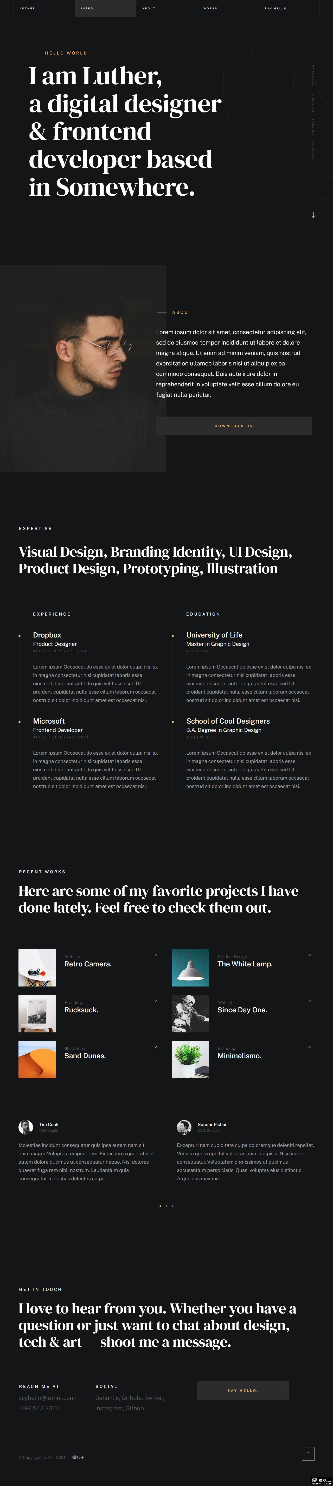 黑色设计大师个人网页模板。
