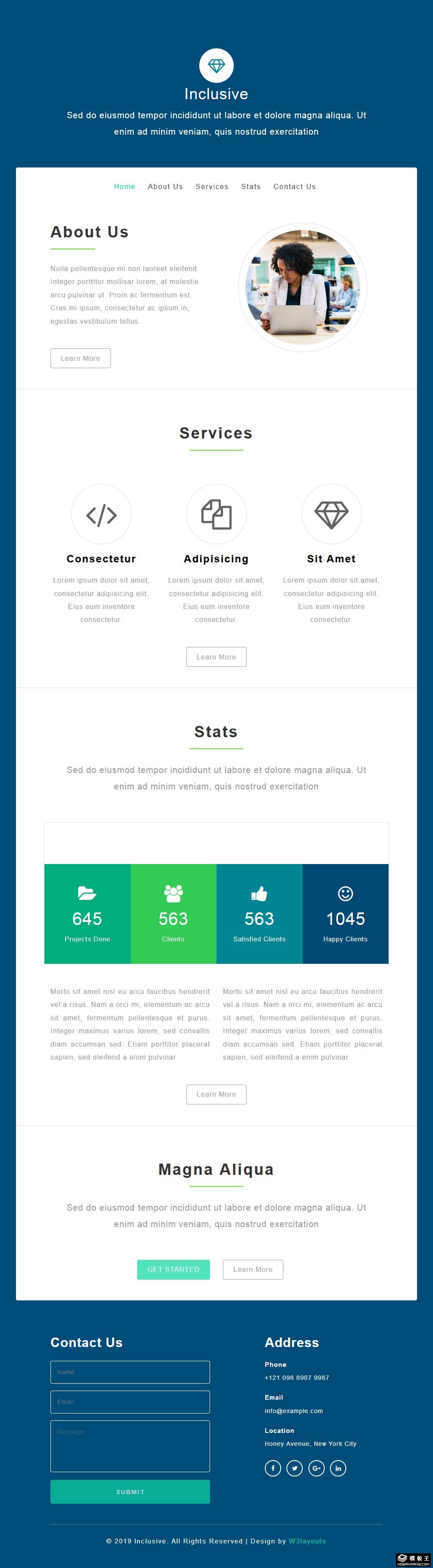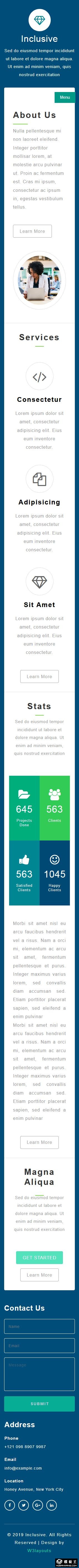 蓝色简约业务介绍响应式网页模板。