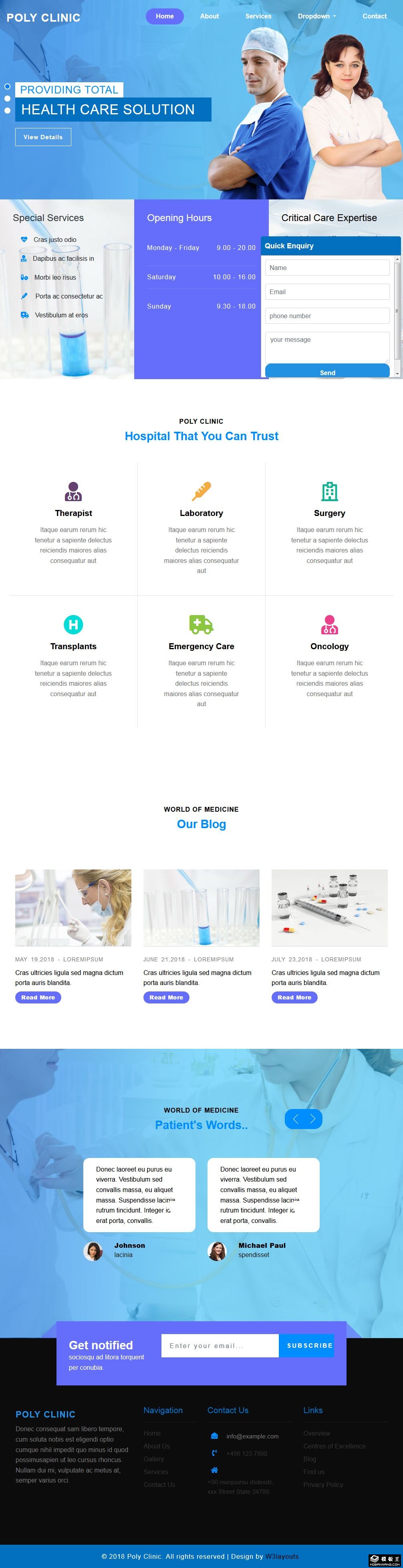 综合医疗诊所响应式网站模板。