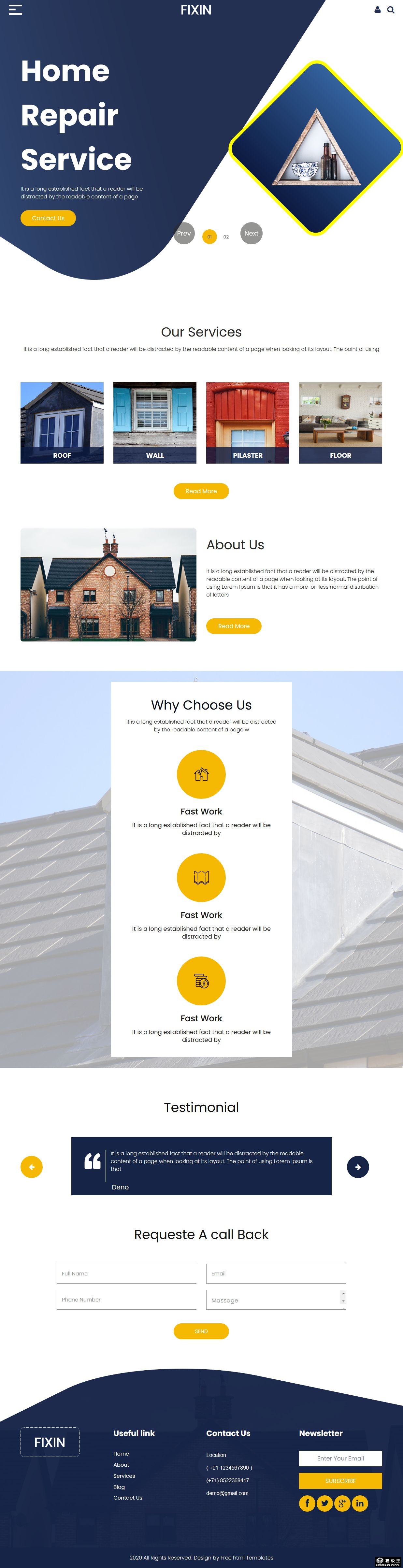 家庭维修服务响应式网页模板。