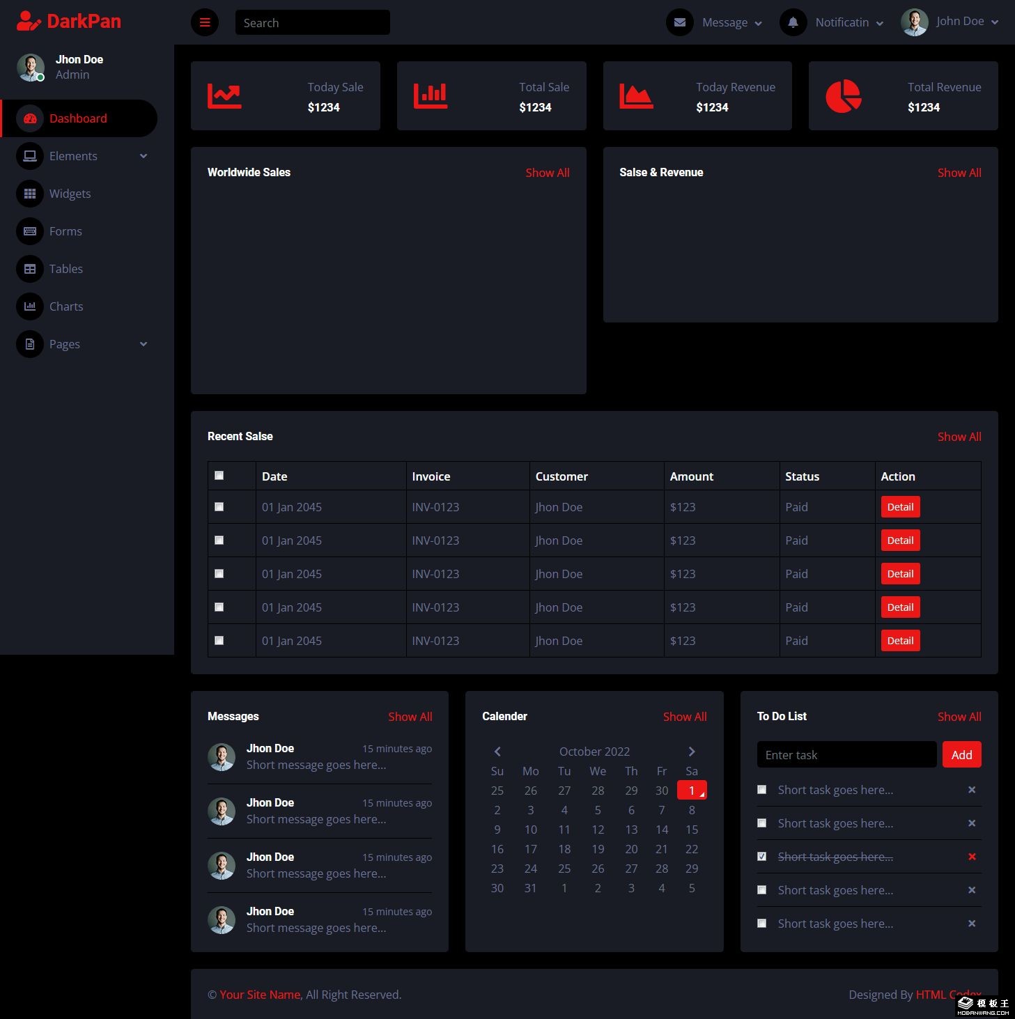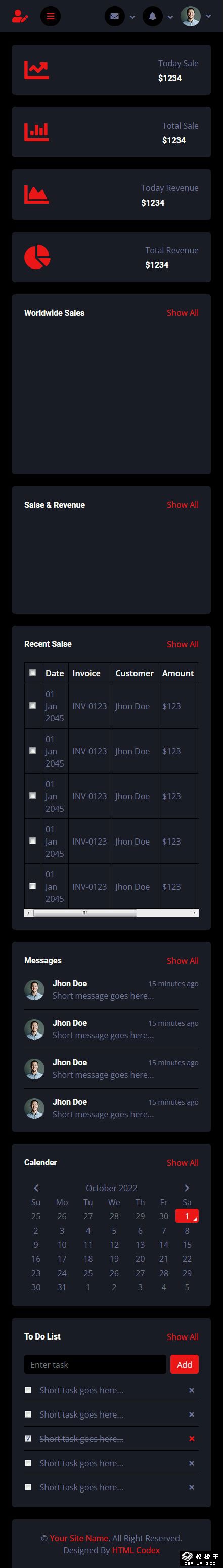 黑色信息管理后台网页模板。