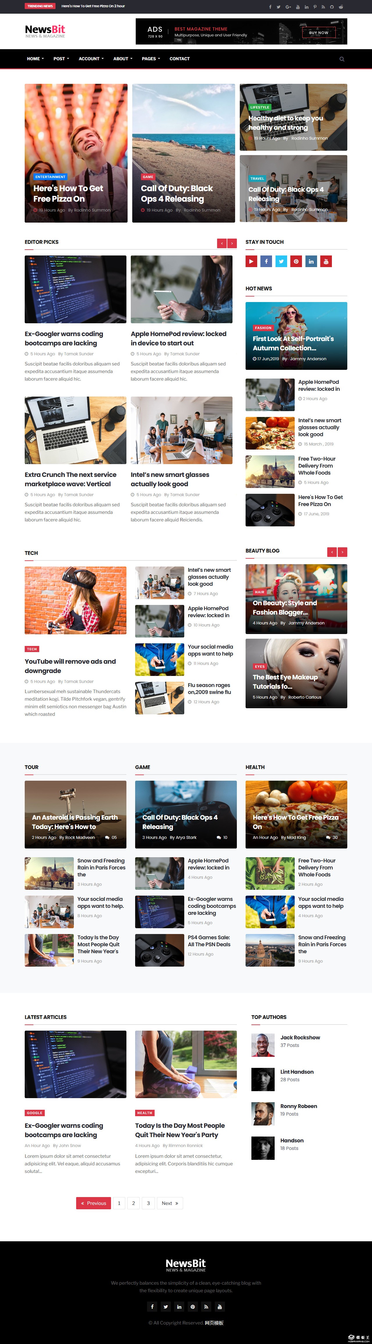 时尚新闻资讯展示网站模板。
