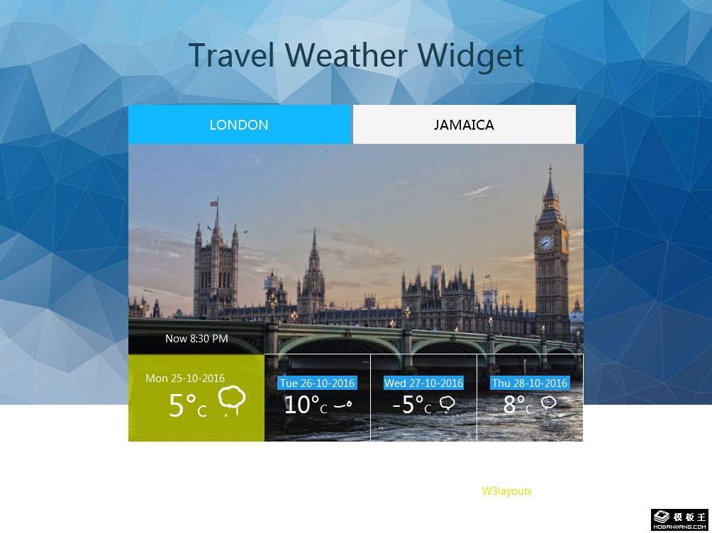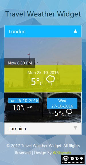 旅行天气预报组件响应式网页模板。