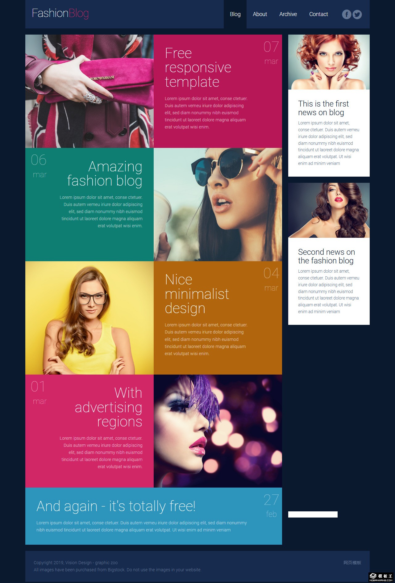 时尚多彩图文日志网页模板。