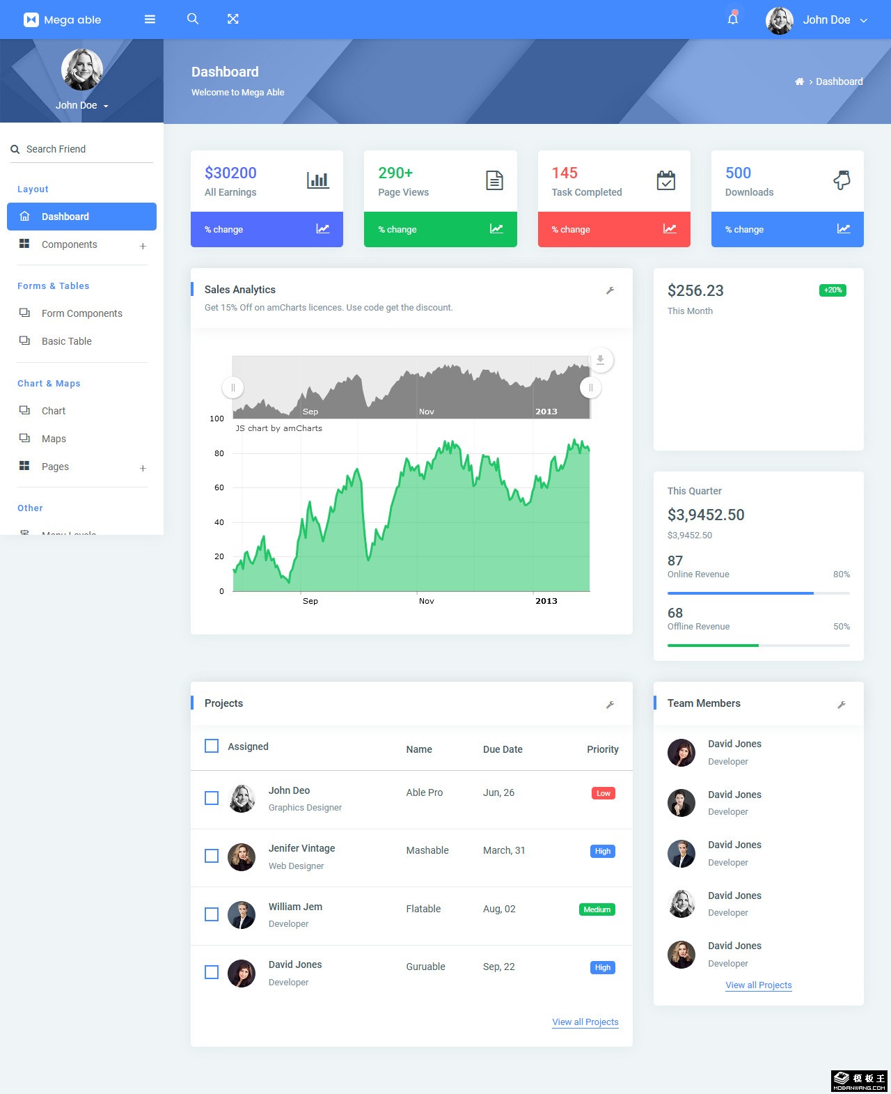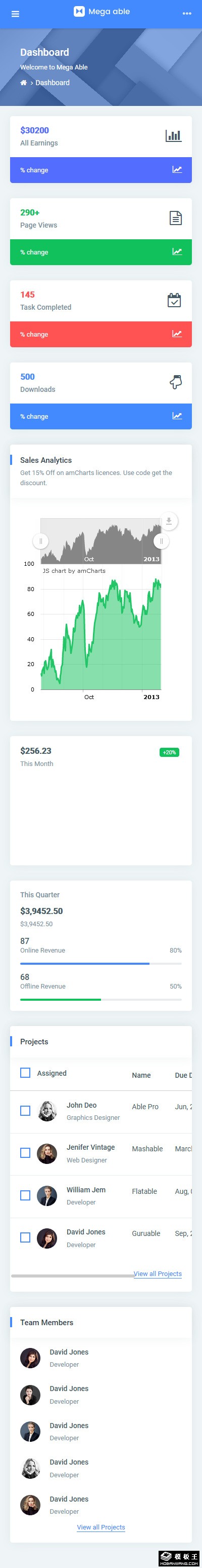 项目团队数据管理后台模板。