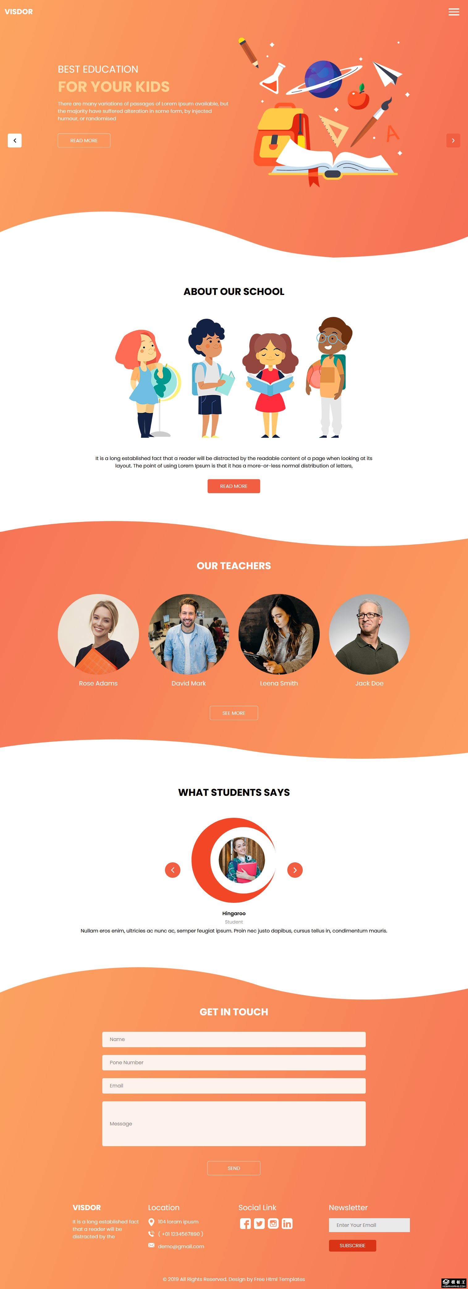 橙色卡通兴趣教育响应式网页模板。