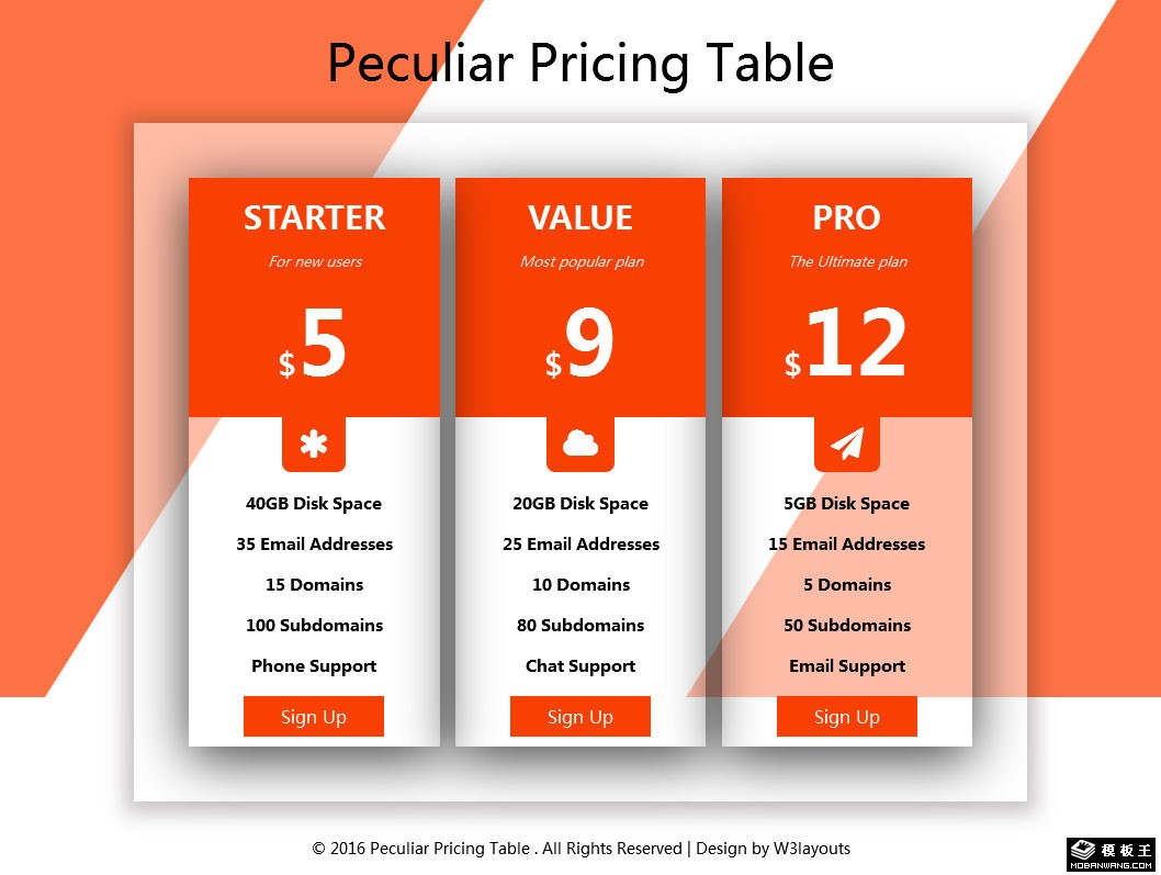 橙色定价表网页模板。
