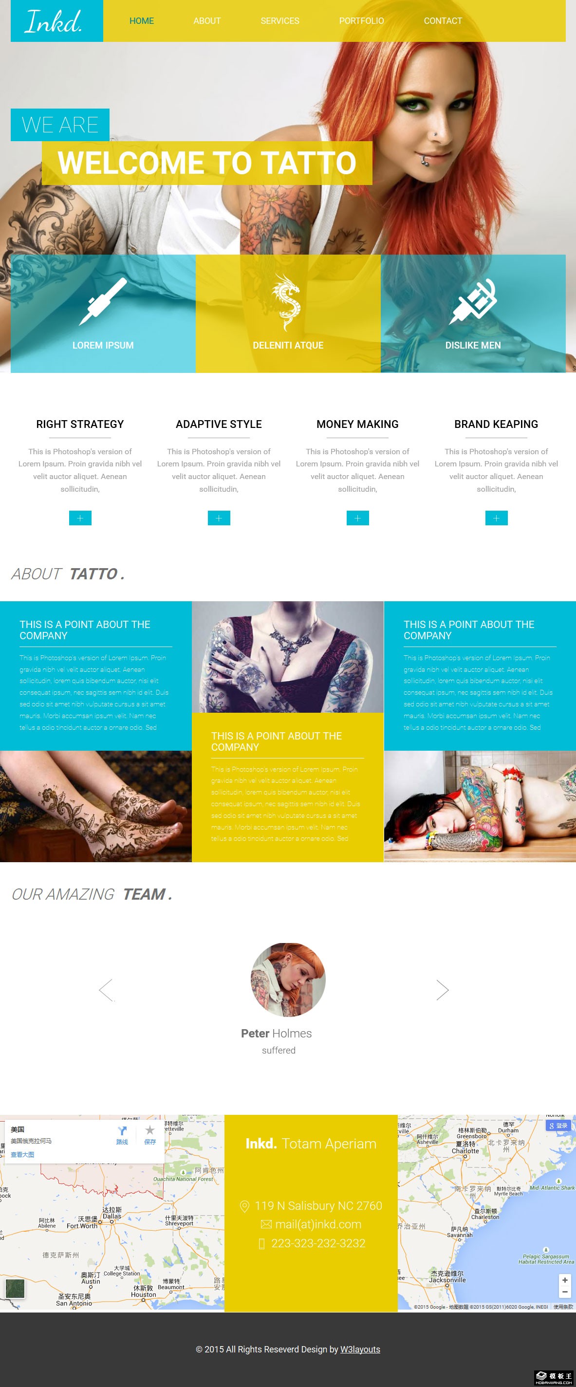 时尚艺术纹身服务响应式网页模板。