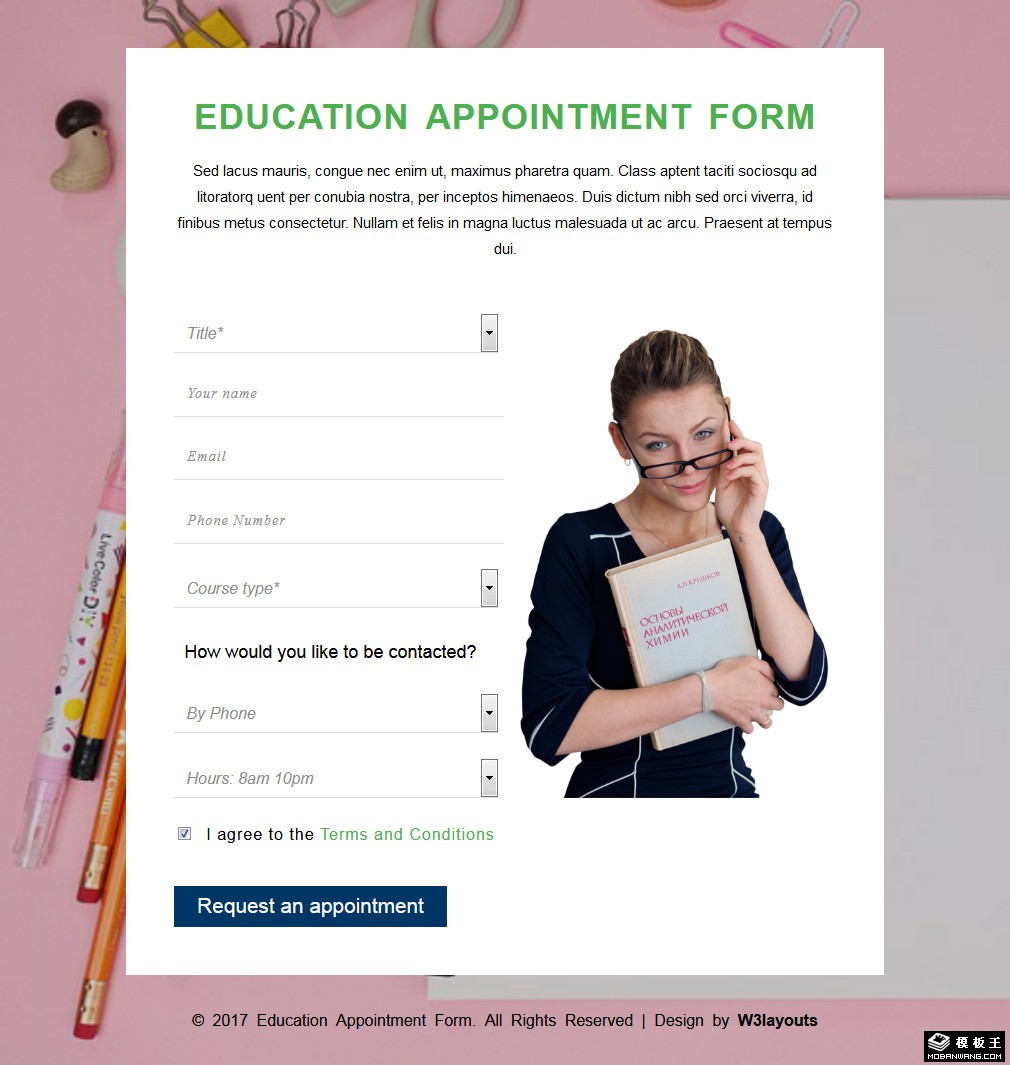 培训预约表单响应式网页模板。