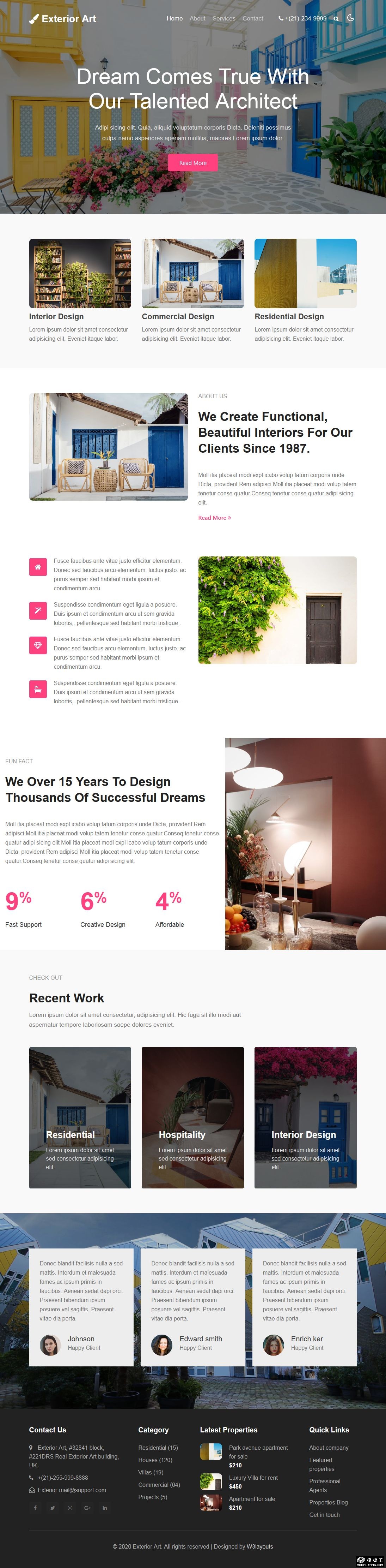 房屋外墙设计响应式网页模板。