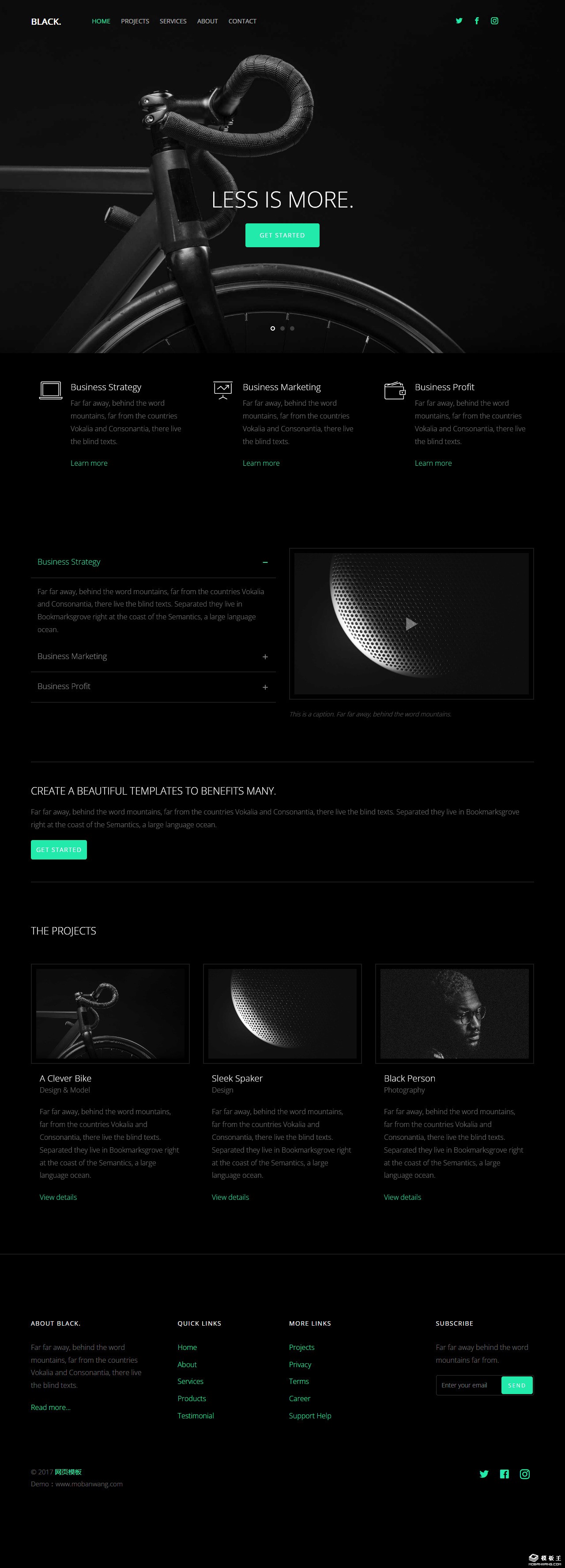 黑色商业项目战略网页模板。