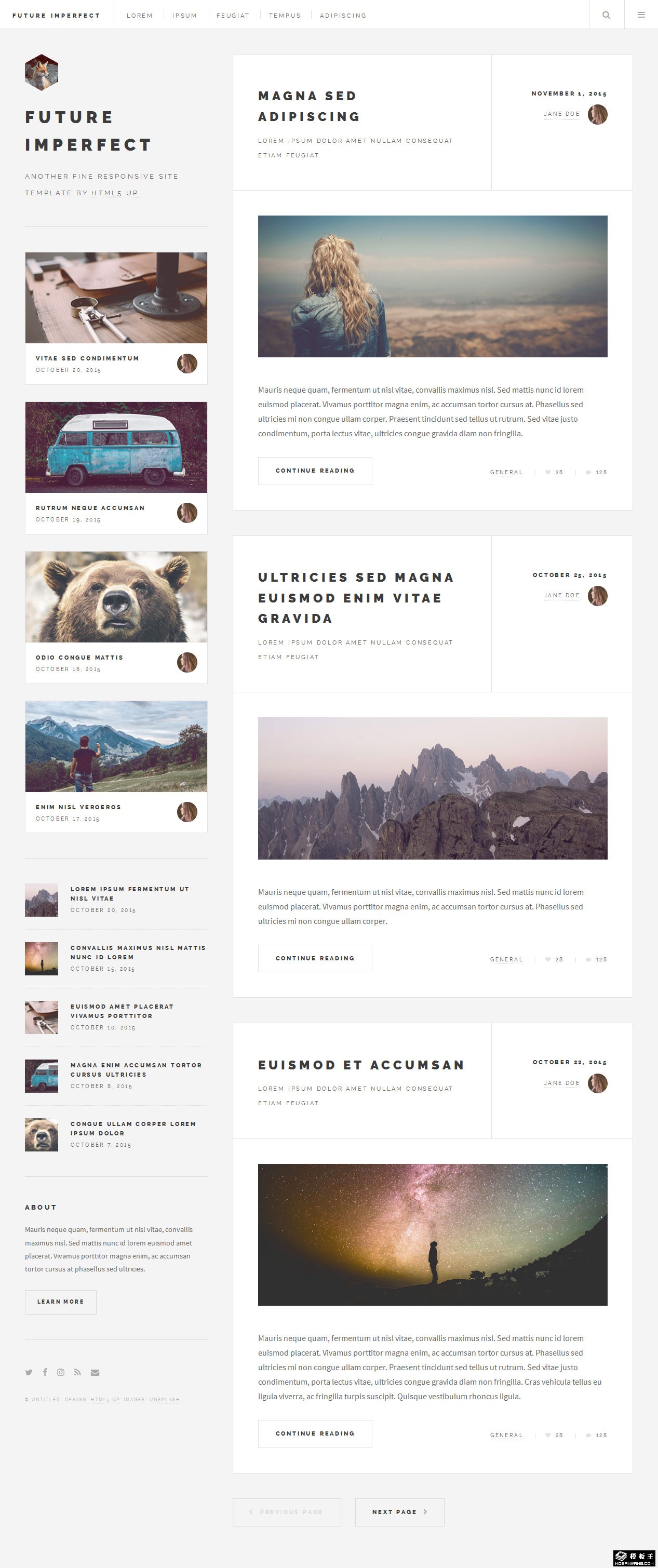 不完美的未来简洁日志响应式网页模板。