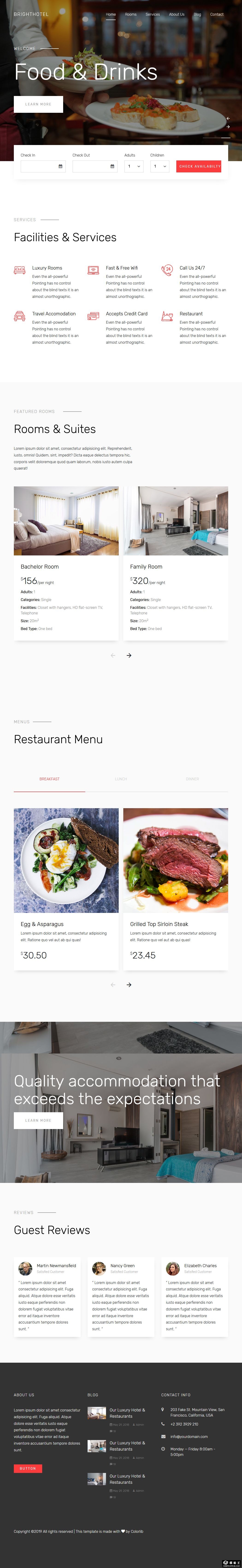 酒店客房餐饮服务响应式网站模板。