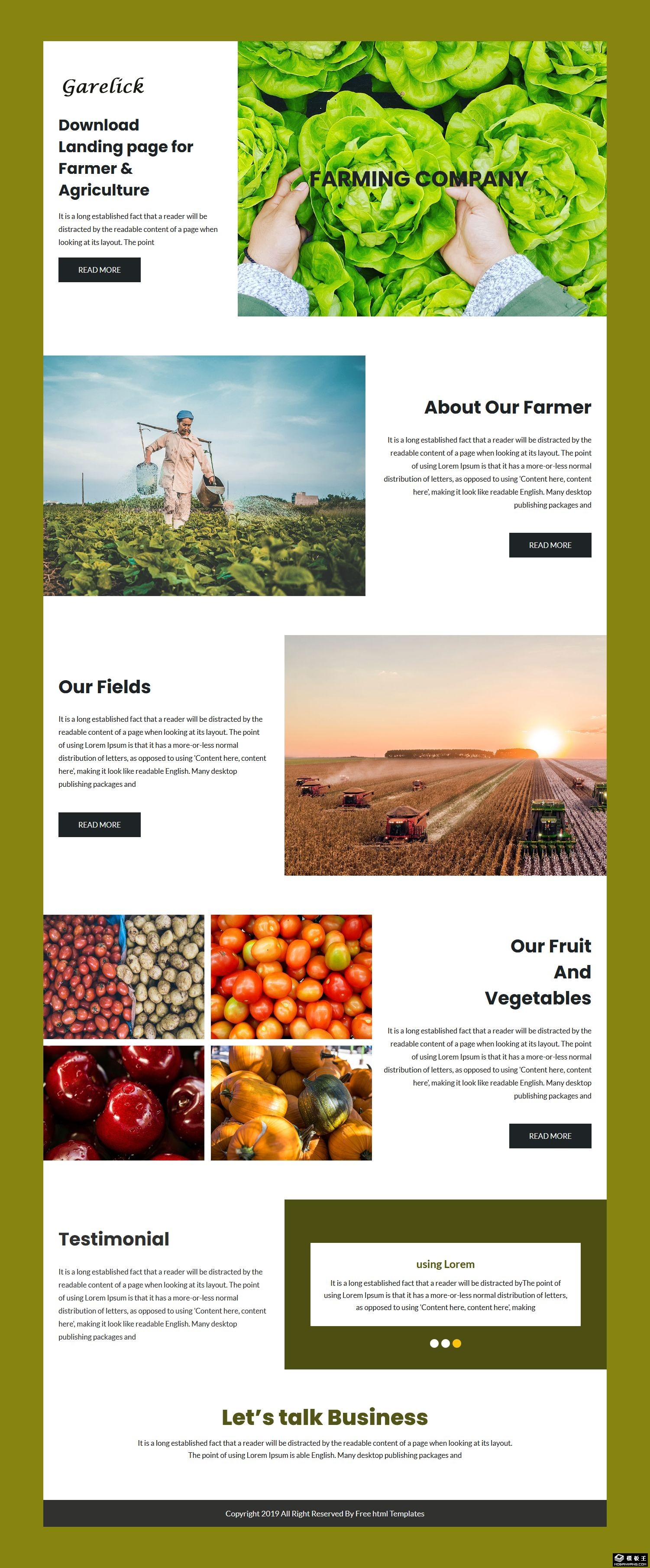 现代有机农场展示网页模板。
