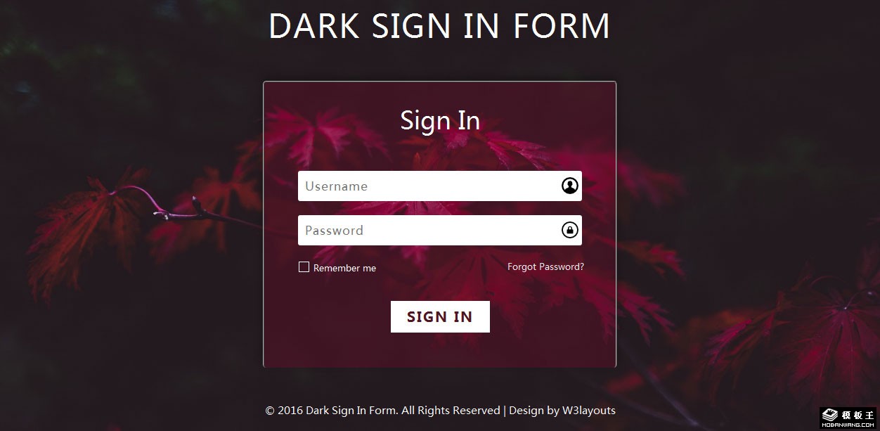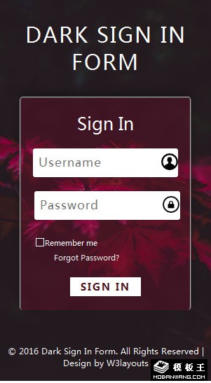暗黑登录框响应式网页模板。