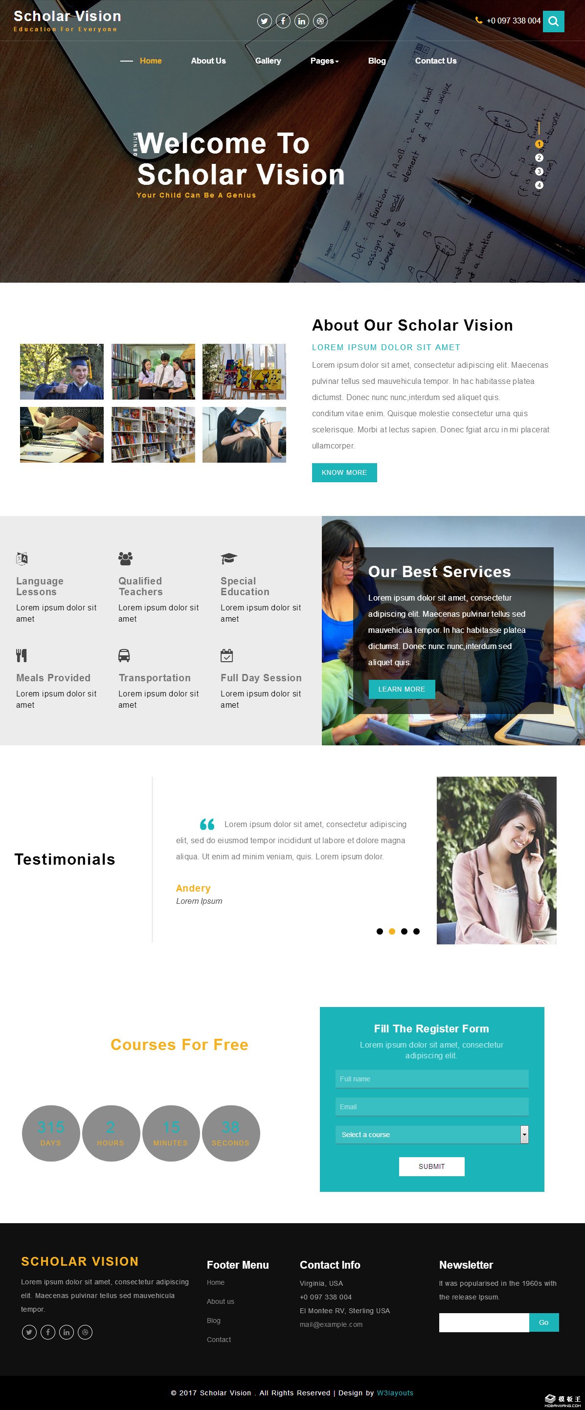 高级教育学术展示响应式网站模板。
