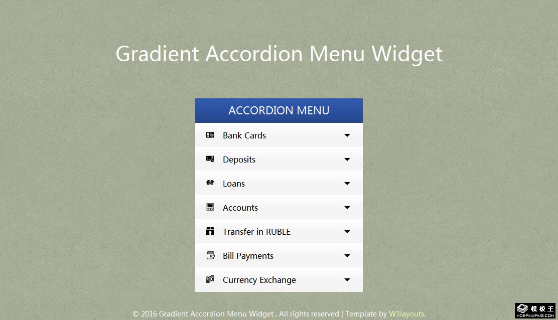 梯度手风琴菜单组件网页模板。