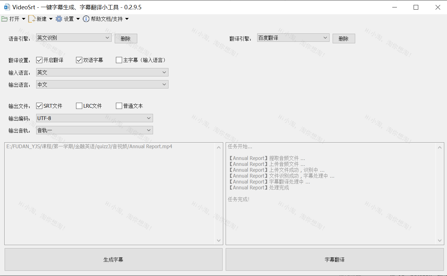 1、支持字幕中英互译、输出双语字幕(百度翻译接口)